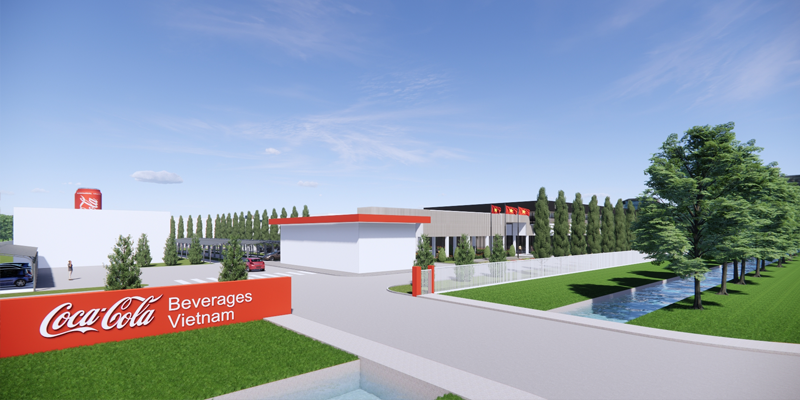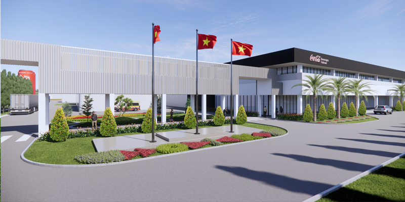 Ý tưởng cảnh quan được xây dựng trên tinh thần kết nối giữa bản sắc thương hiệu Coca-Cola và đặc trưng vùng đất Long An – “Đất rồng bình yên”. Ngôn ngữ thiết kế khai thác các đường cong chuyển động mềm mại, gợi liên tưởng đến dòng chảy năng động của thương hiệu “Driven to Win”, đồng thời lồng ghép hình tượng uốn lượn của rồng phương Nam như một biểu trưng cho thịnh vượng và phát triển bền vững.