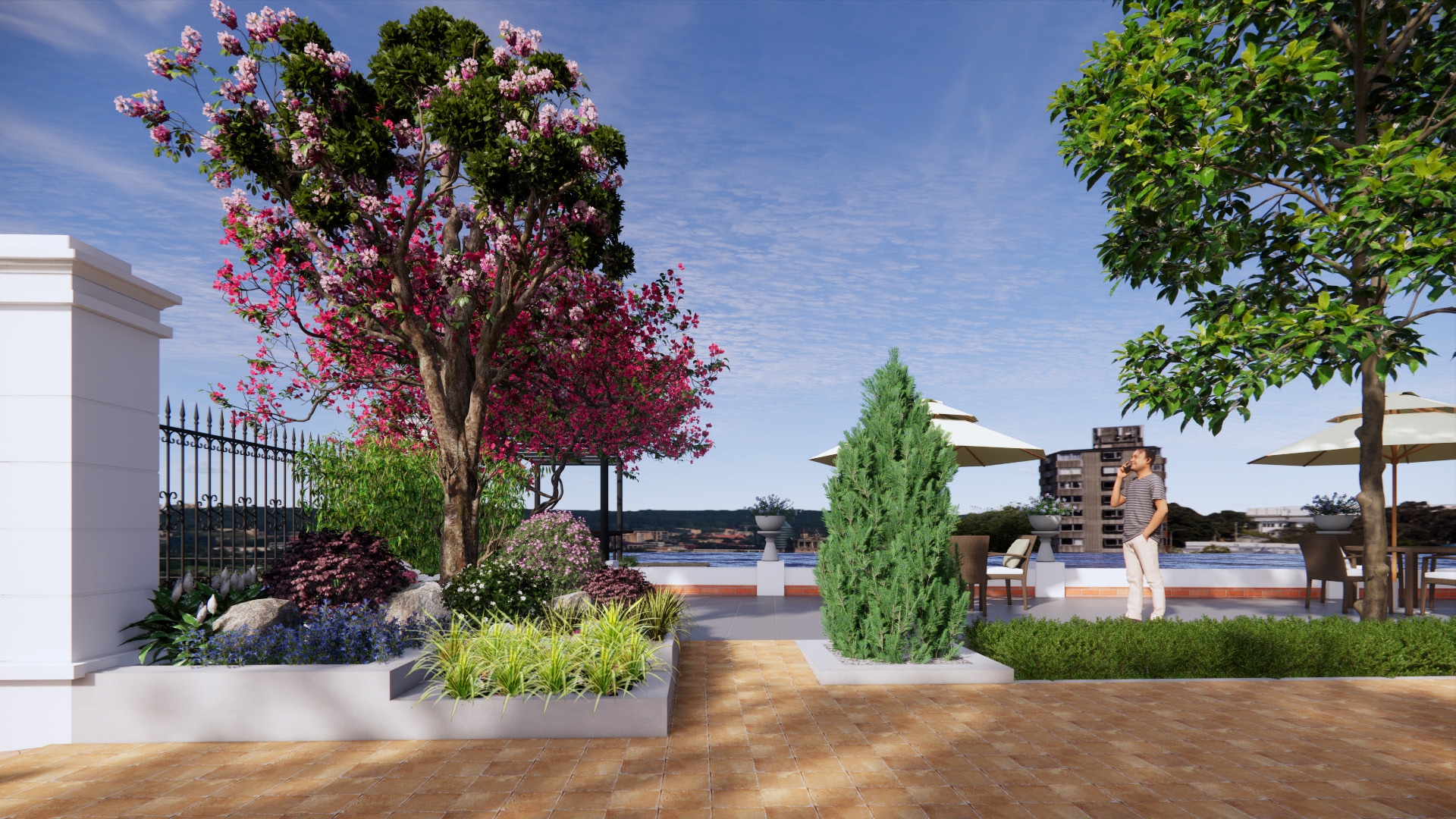 Tổng thể cảnh quan hướng đến sự cân bằng giữa tính trang trọng của biệt thự Đông Dương và sự phóng khoáng của không gian sông nước Nam Bộ, tạo nên một “ốc đảo xanh” riêng tư nhưng vẫn hòa mình vào nhịp sống đô thị bên dòng sông Sài Gòn.